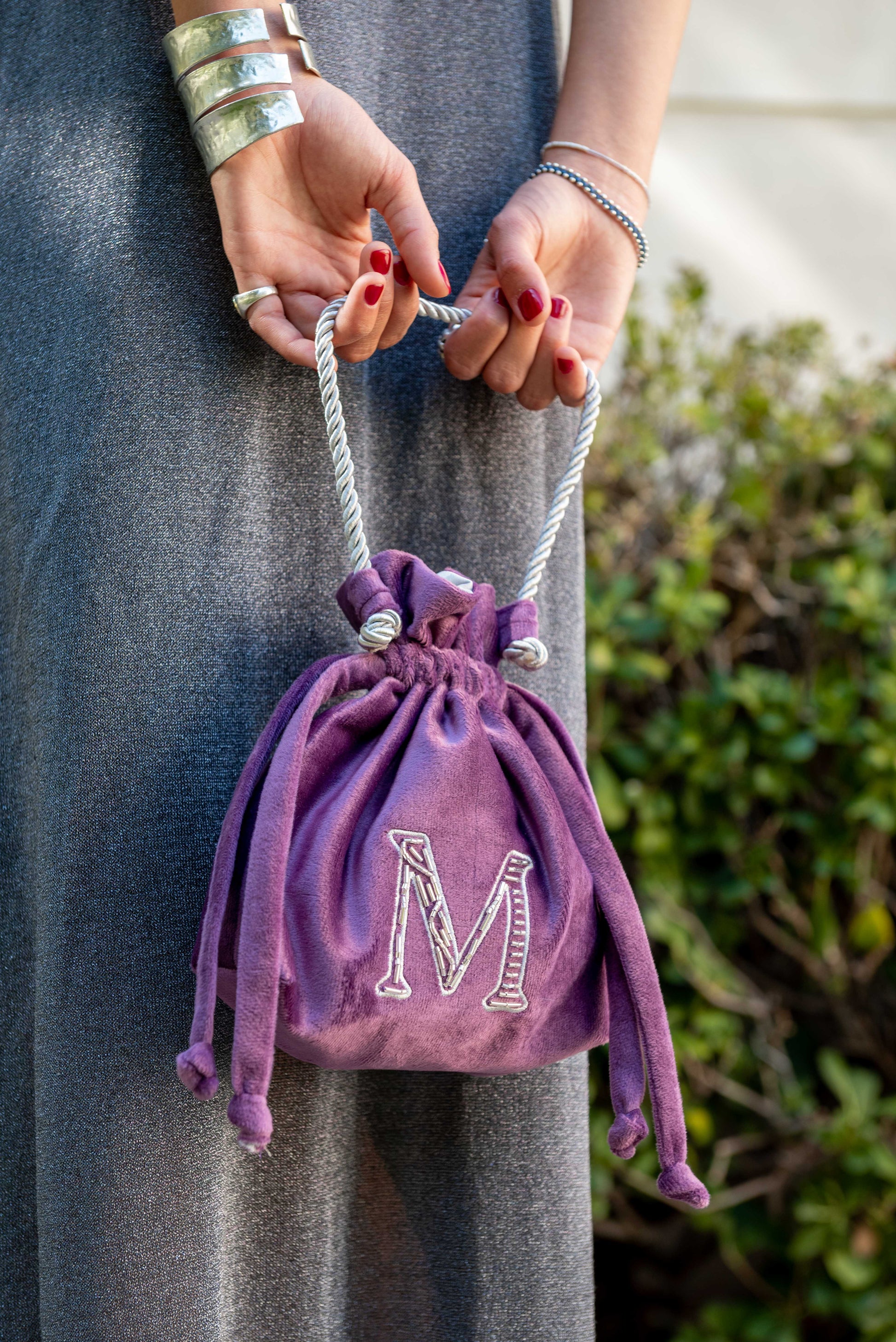 Saquito de Mano Morado letra M